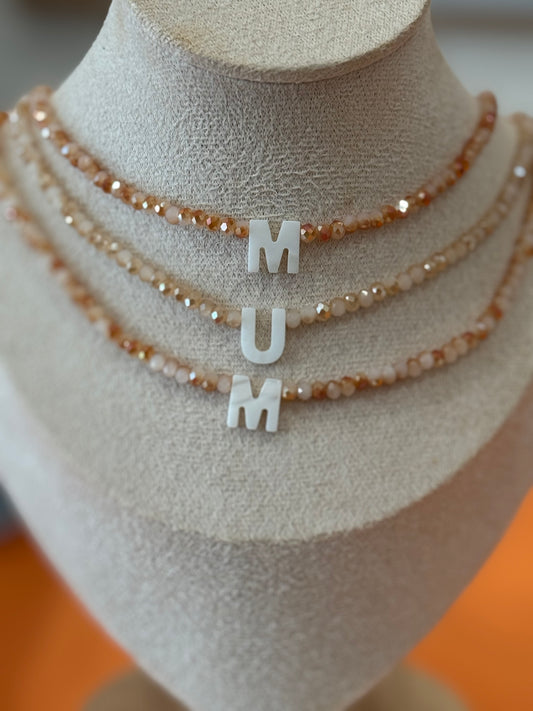 Beaded Initial Necklace ~ Natural