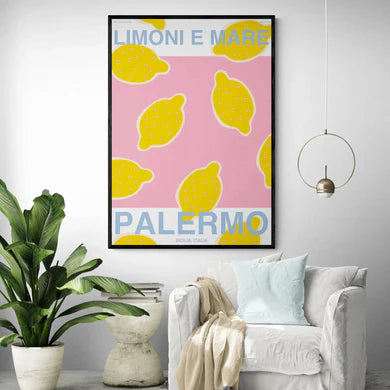 Palermo Lemon Print 84x119 cm / Framed Print (White)