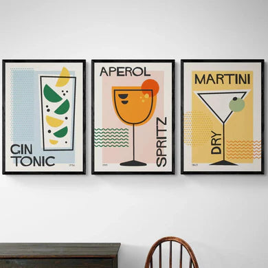 Aperol Spritz Set of 3 A1 60x84 cm / Framed Print (Natural Timber)